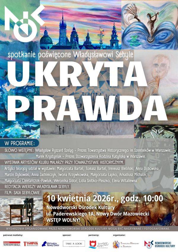 W imieniu Nowodworskiego Ośrodka Kultury serdecznie zapraszamy na wernisaż poświęcony Władysławowi Sebyle - międzywojennemu poecie oraz oficera Wojska Polskiego II RP, zamordowanego w Charkowie.